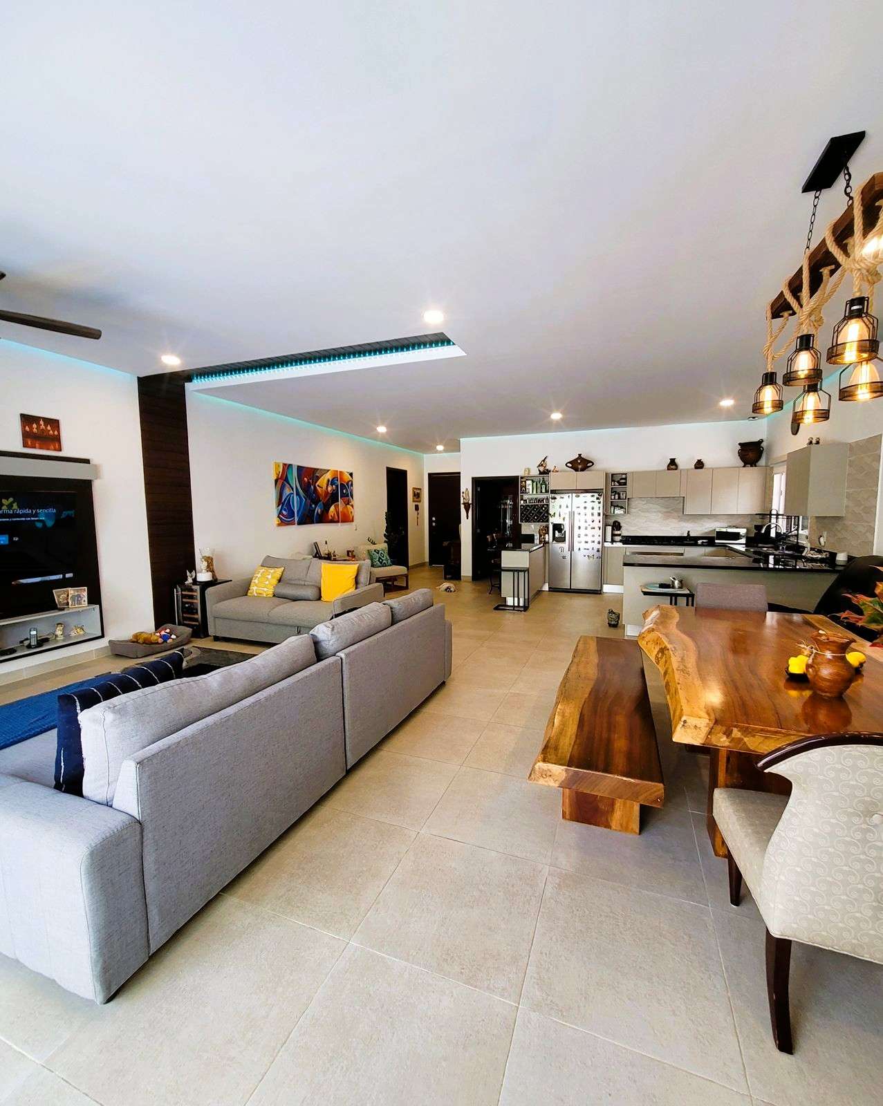 Pensando en la eficiencia energética y el confort, la propiedad está equipada con paneles solares, un tanque de agua solar y aires acondicionados inverter, asegurando un ambiente siempre agradable. La iluminación ambiental indirecta aporta un toque acogedor a cada rincón de la casa.
