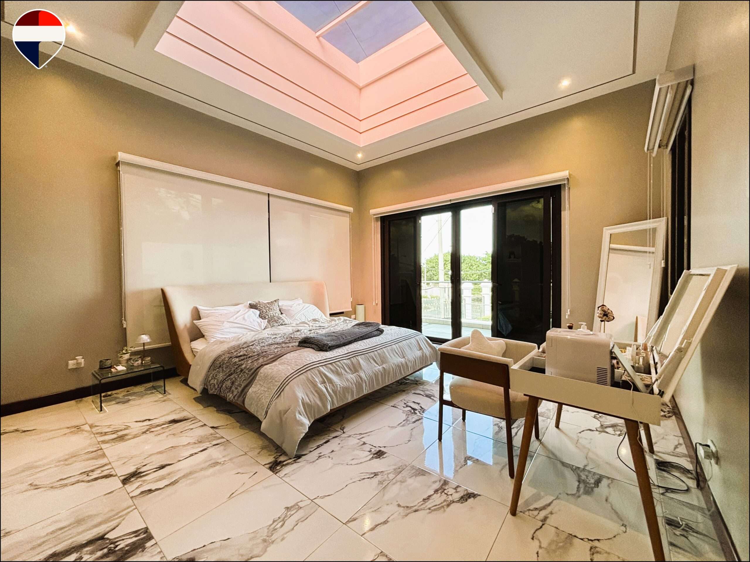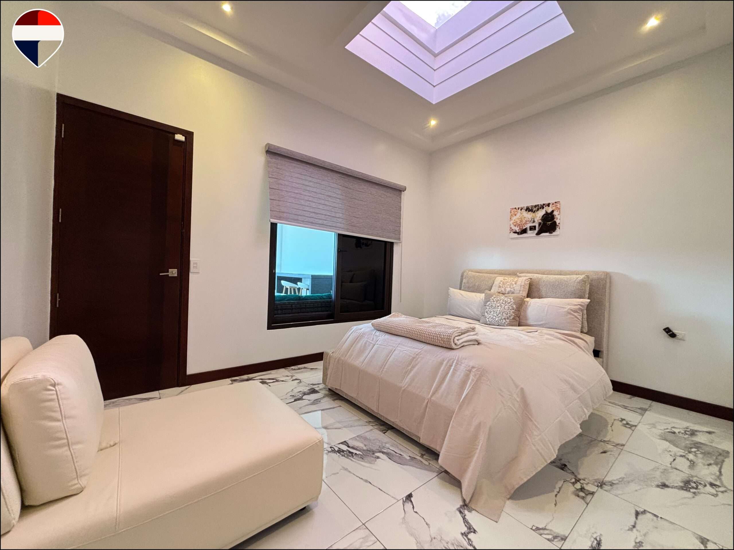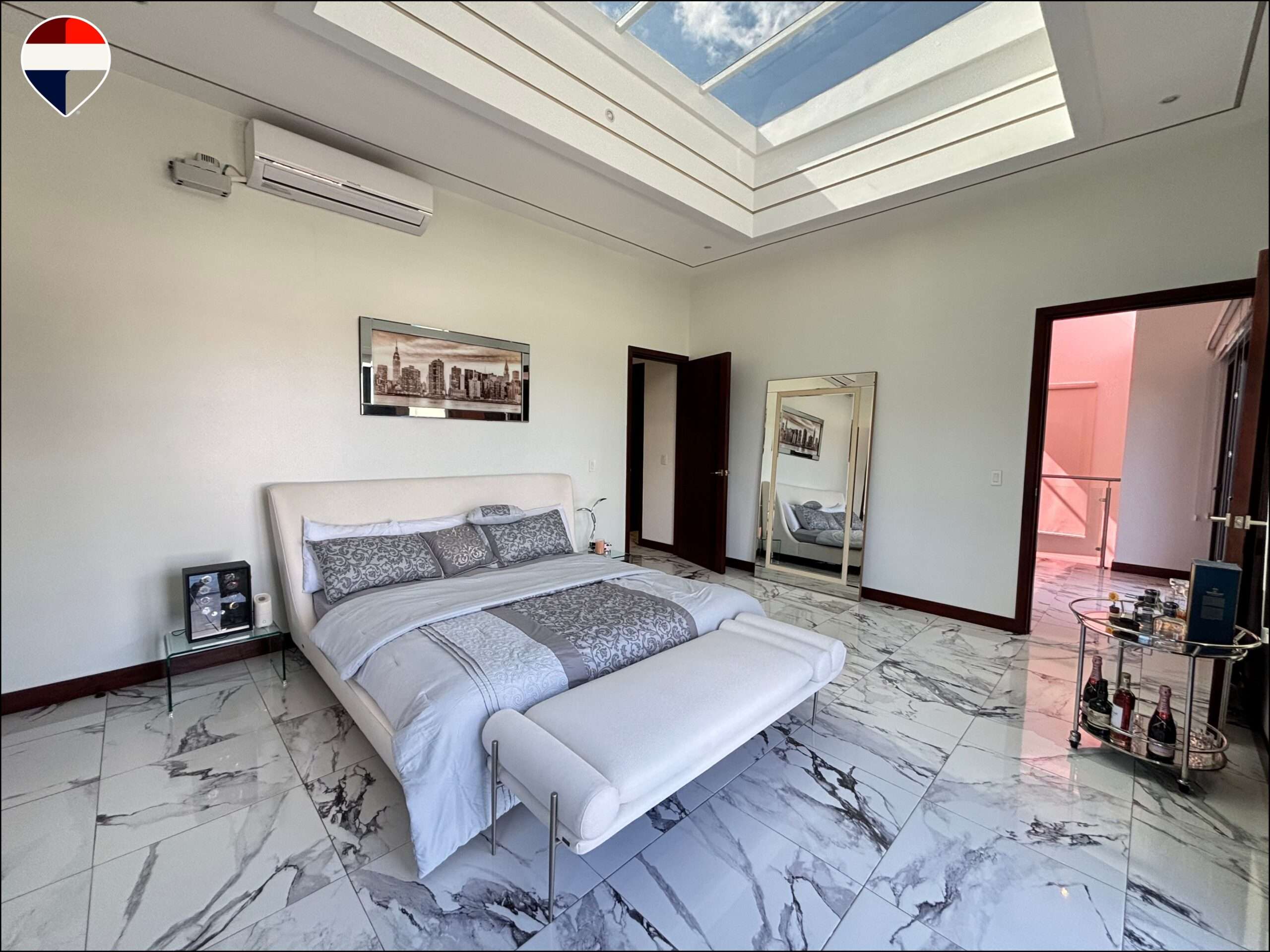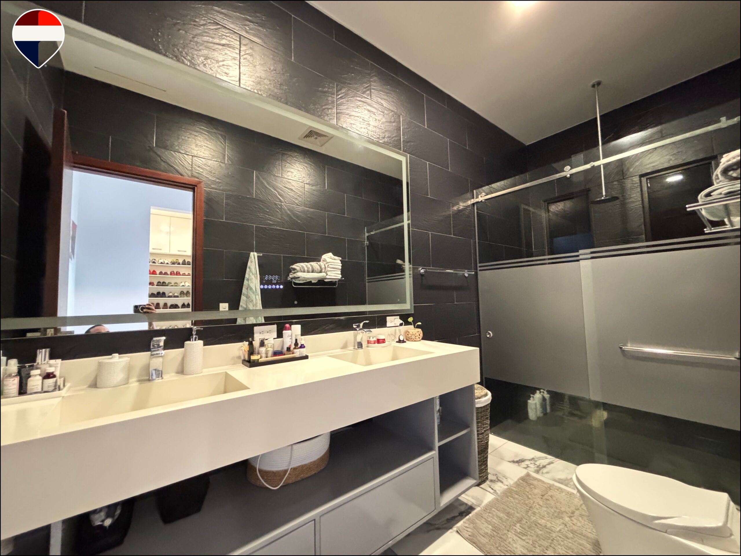 Con un diseño moderno que integra los ambientes de forma armoniosa, esta residencia destaca por su excelente iluminación natural y distribución funcional. La propiedad cuenta con cinco amplias habitaciones, cada una con su baño privado y clóset, distribuidas en cuatro habitaciones en el segundo nivel y una habitación en el primer piso, lo que brinda comodidad y privacidad.