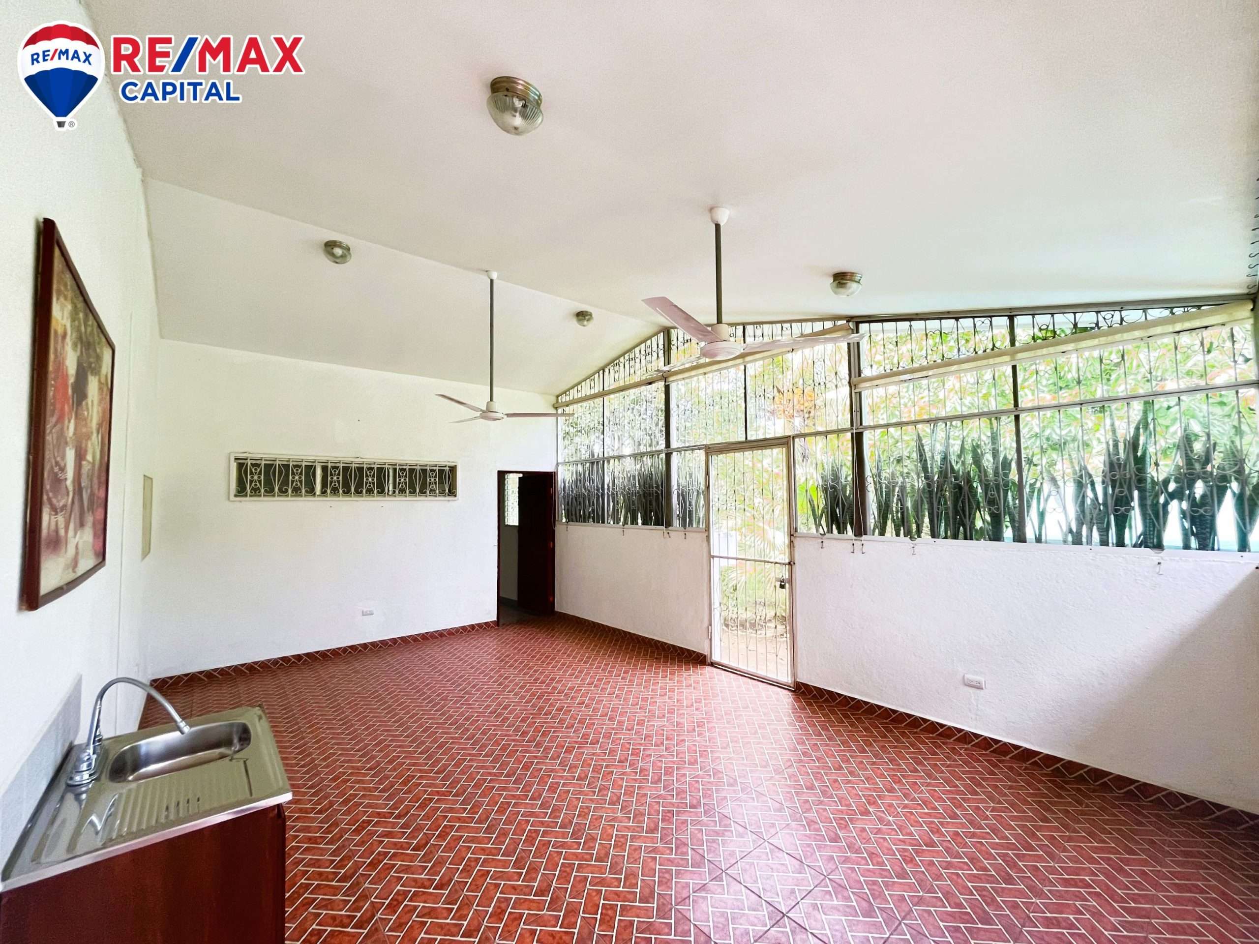 Las áreas externas de esta casa son muy propias para personas que les fascina los espacios abiertos y la ornamentación, ya que en el área posterior de la casa se aprecia un enorme patio, con variedad de plantas y árboles frutales, incluyendo cinco árboles de aguacate en producción, limón, mango, higo, cocos, jocote, entre otros.