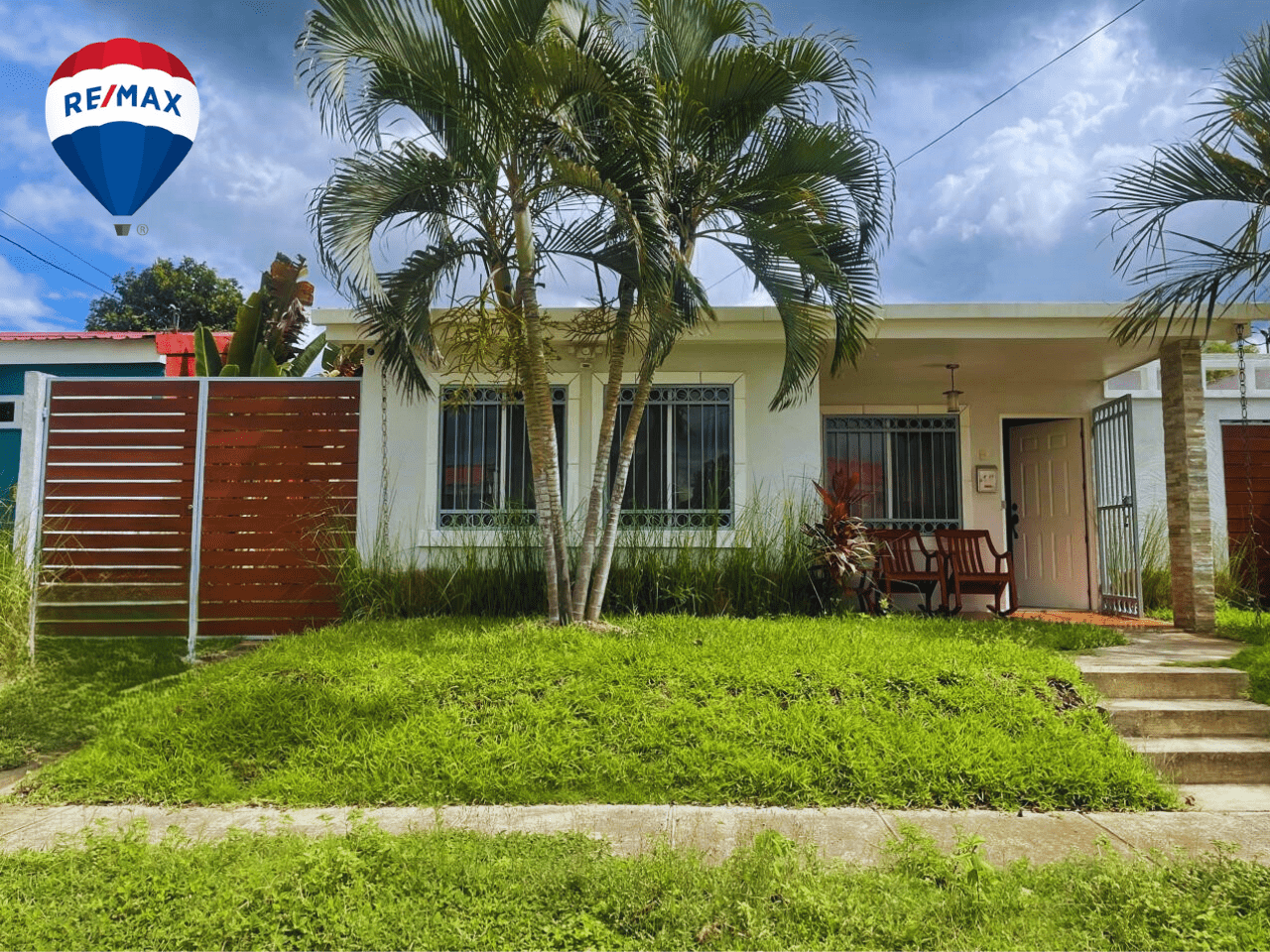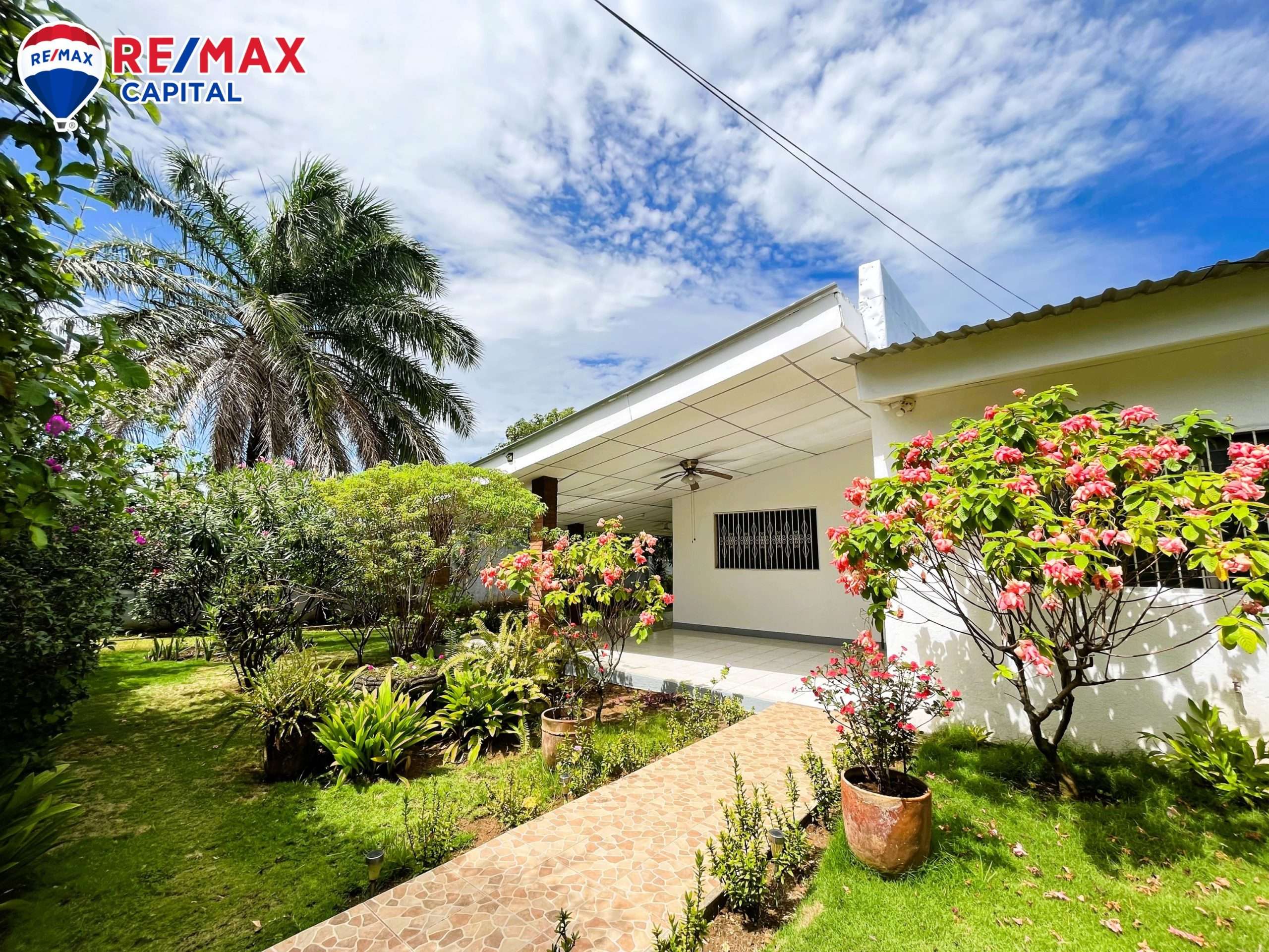 Esta casa amplia es de un solo nivel y se ubica en un terreno de 2,100 vrs2 y 384 mts2 de construcción, diseñada con amplios espacios y techos altos. Está distribuida en cuatro habitaciones, tres baños, sala principal que conecta a un family room y el área de comedor y la cocina que, a su vez, se conecta con el área de lavado.