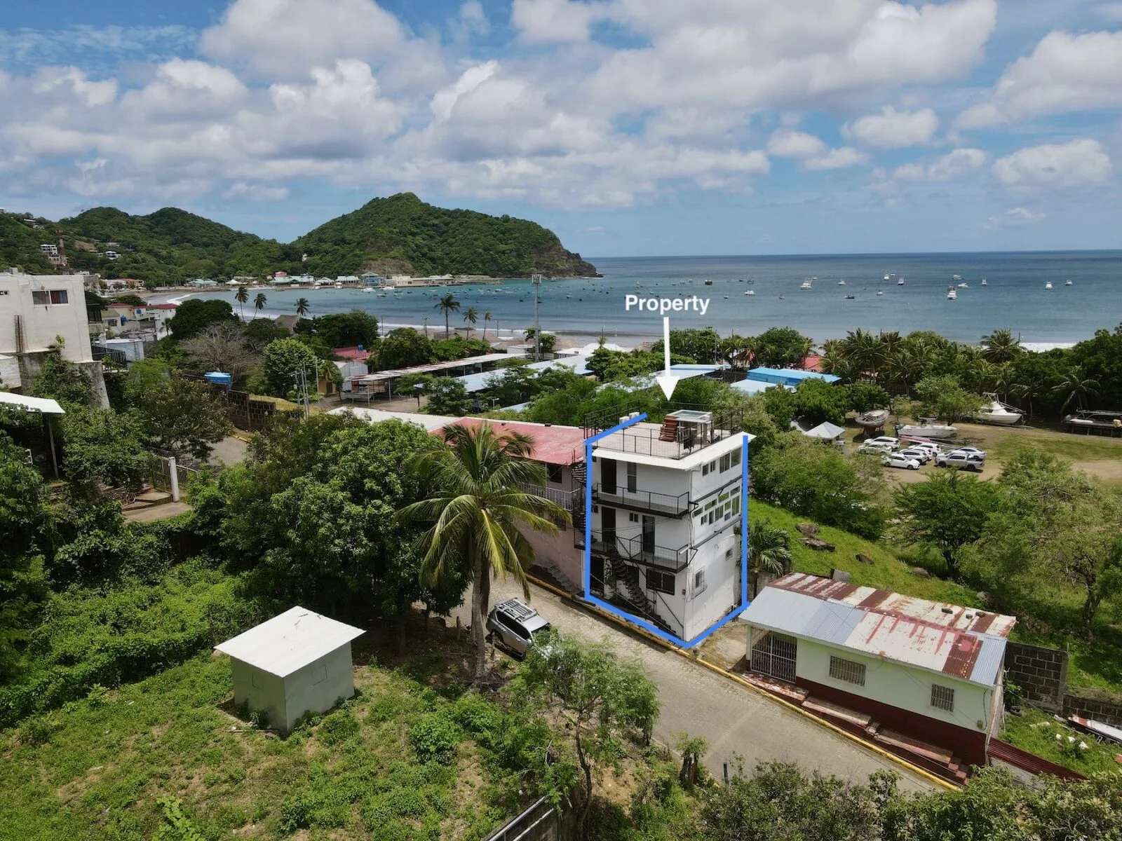 Este Edificio con Vista al Mar en el Centro de San Juan de Sur, es ideal para inversionistas interesados en generar múltiples flujos de ingresos. Ubicada a solo dos cuadras de la playa, la propiedad cuenta con tres unidades independientes de renta completamente independientes y amuebladas, dos de ellas con balcones privados con vista al mar.