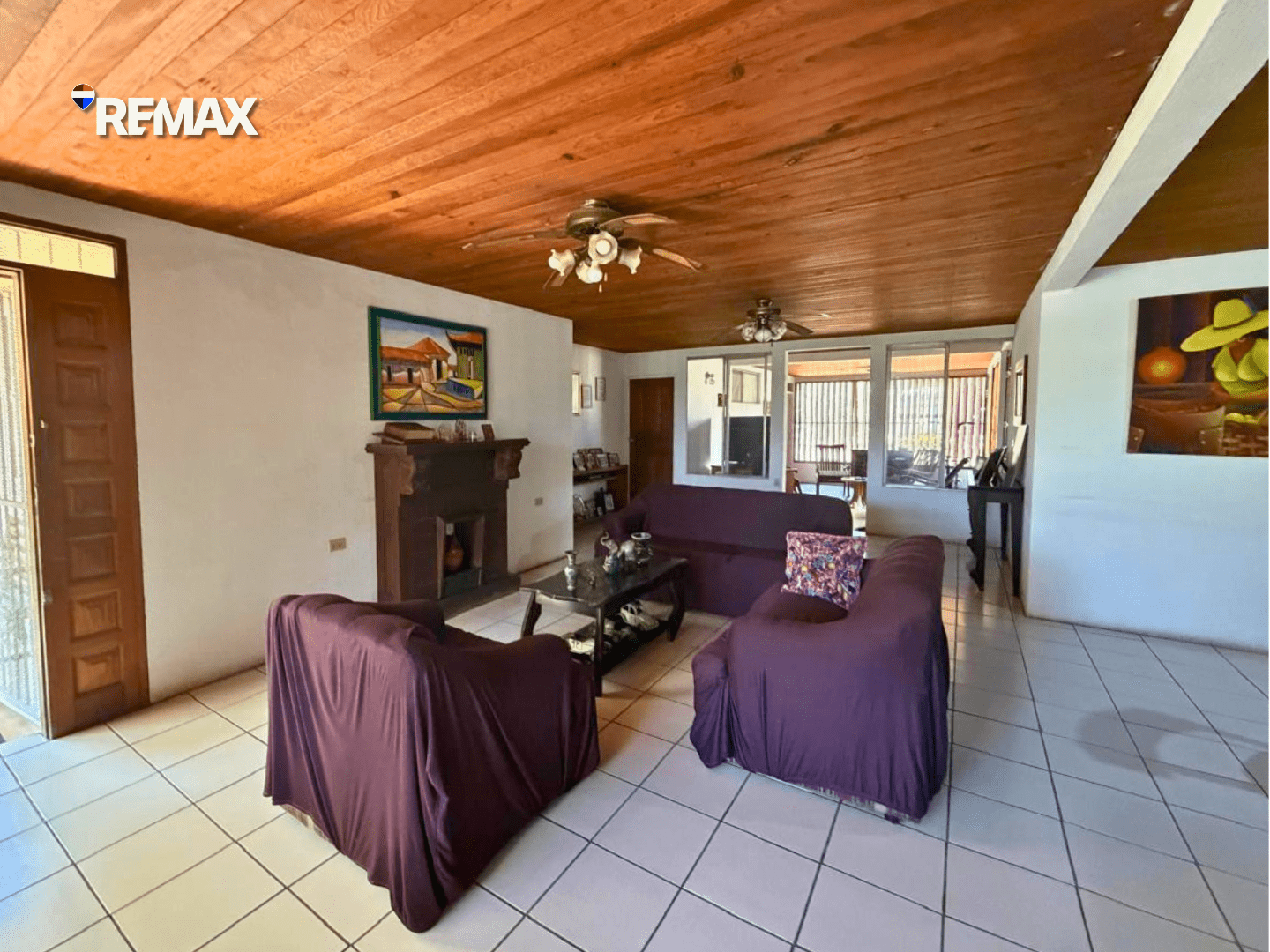 Esta preciosa casa se ubica en un área de terreno de 719 m2 con 350m2 de elegante construcción. Está distribuida en cuatro habitaciones, tres baños que se conectan con tres amplios corredores de techos machimbrados que a su vez se proyectan a una hermosa terraza techada situada majestuosamente en el centro de sus dos jardines interiores adornados de una variedad de plantas ornamentales y una bella fuente de agua.